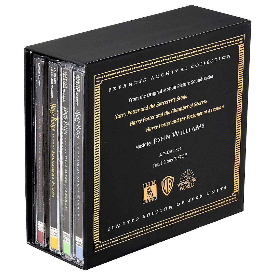 La-La Land Records proudly presents, in association with Warner Bros. Entertainment and Warner Music Group, HARRY POTTER – THE JOHN WILLIAMS SOUNDTRACK COLLECTION, a limited edition, 7-CD box set containing Academy Award-Winning composer John Williams’ newly remastered, restored and expanded scores for the first three films in the HARRY POTTER series: HARRY POTTER AND THE SORCERER’S STONE (2001), HARRY POTTER AND THE CHAMBER OF SECRETS (2002) and HARRY POTTER AND THE PRISONER OF AZKABAN (2004). This deluxe presentation is composer approved and contains a bounty of previously unreleased music, featuring a total running time of just under eight hours (7:57).